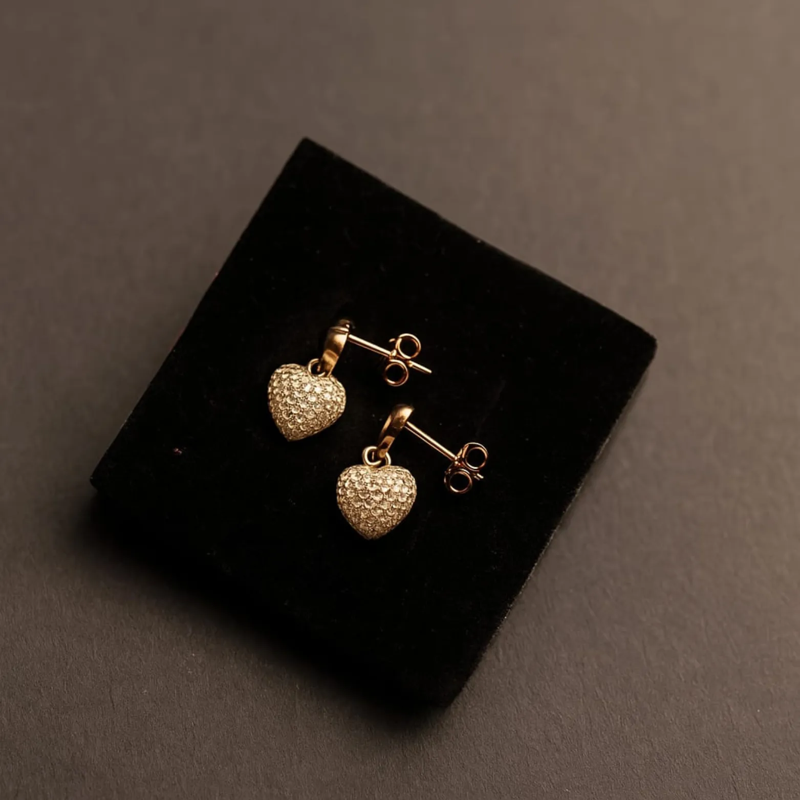 Romantic rose gold heart earrings with shimmering cubic zirconia for a sparkling statement look