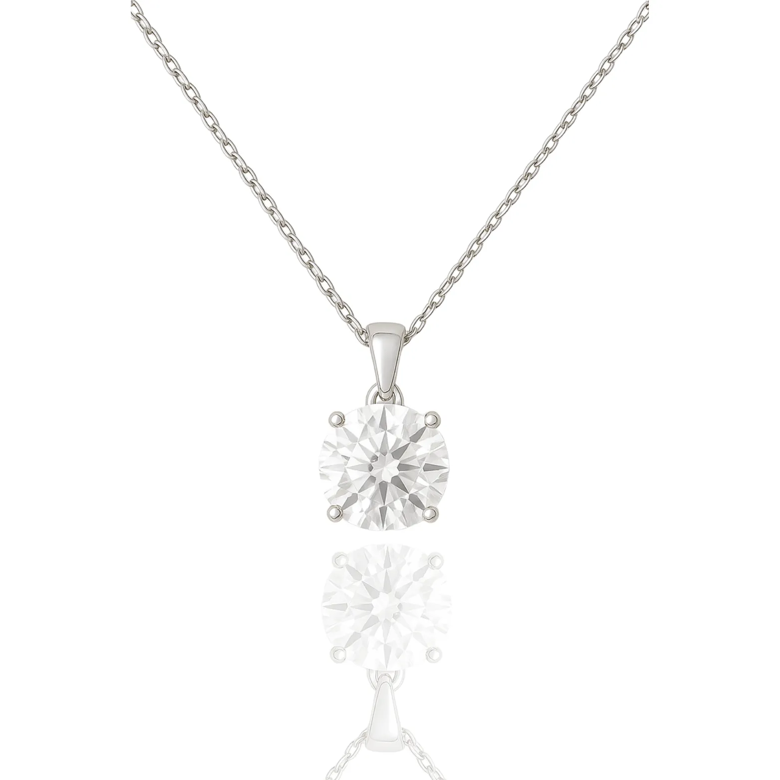 Design – Classic round-cut solitaire pendant with matching round stud earrings