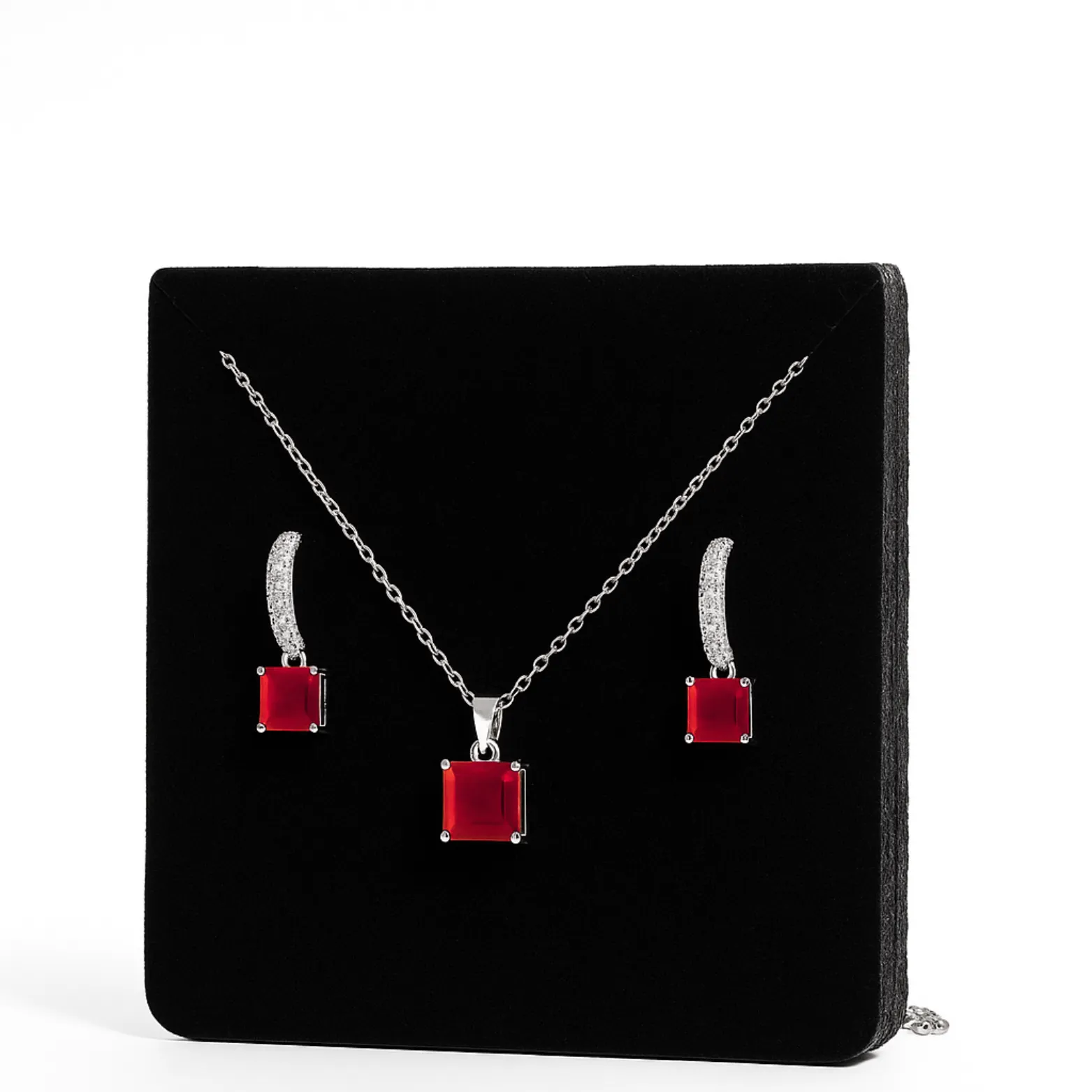 Bold elegance meets timeless design in this red stone jewelry set crafted in sterling silver.