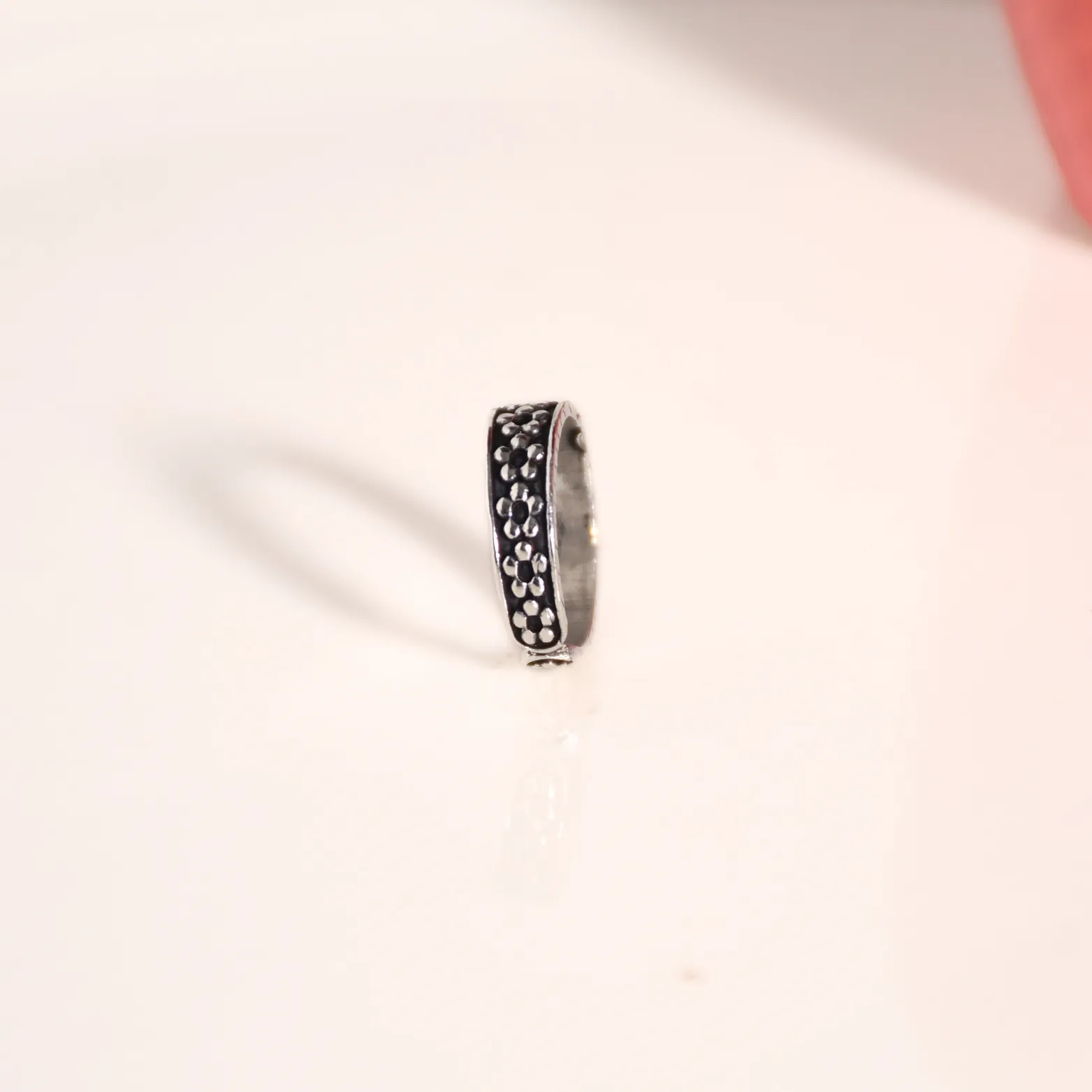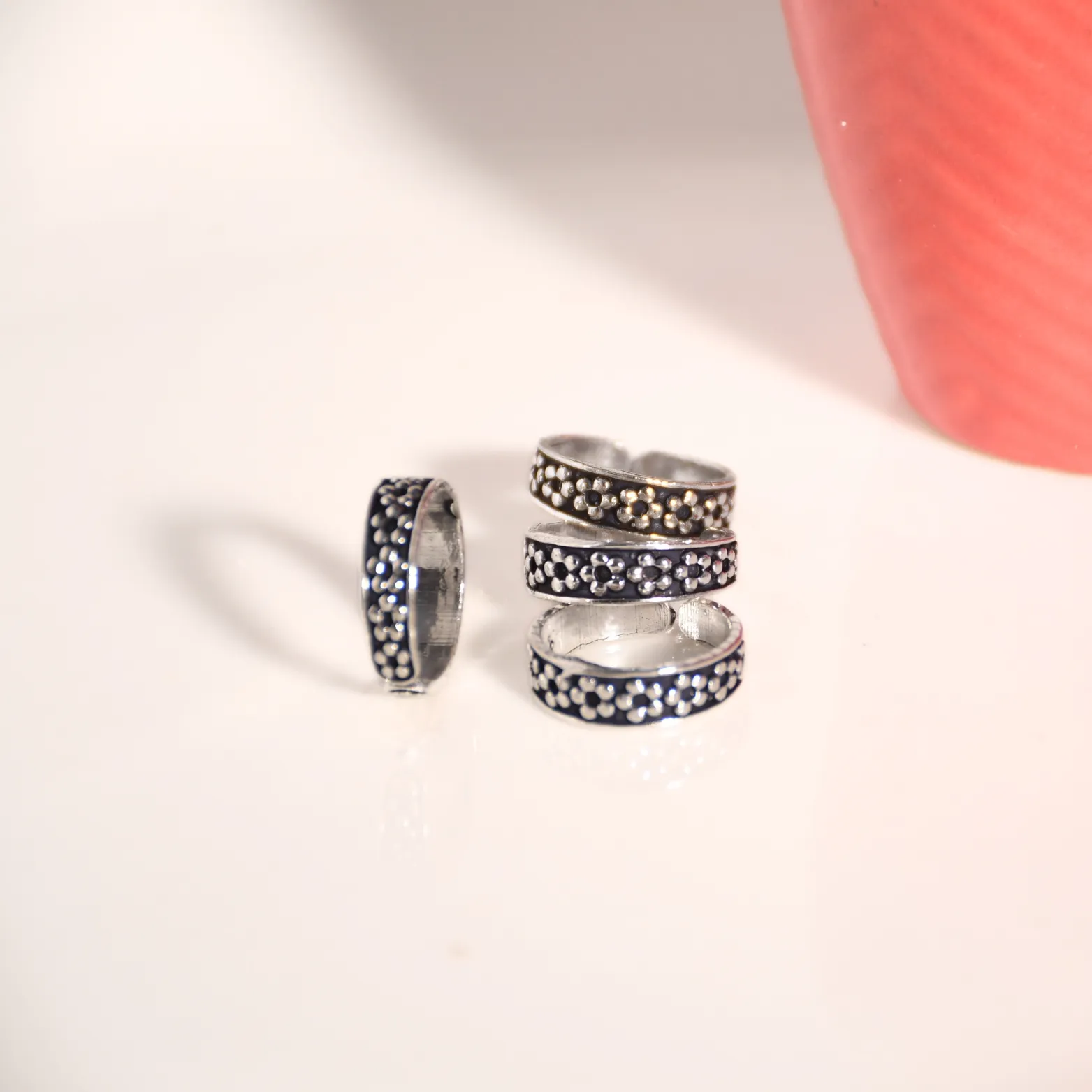 Add a dash of antique charm to your every step with these beautifully crafted oxidized floral toe rings. (set of 2)