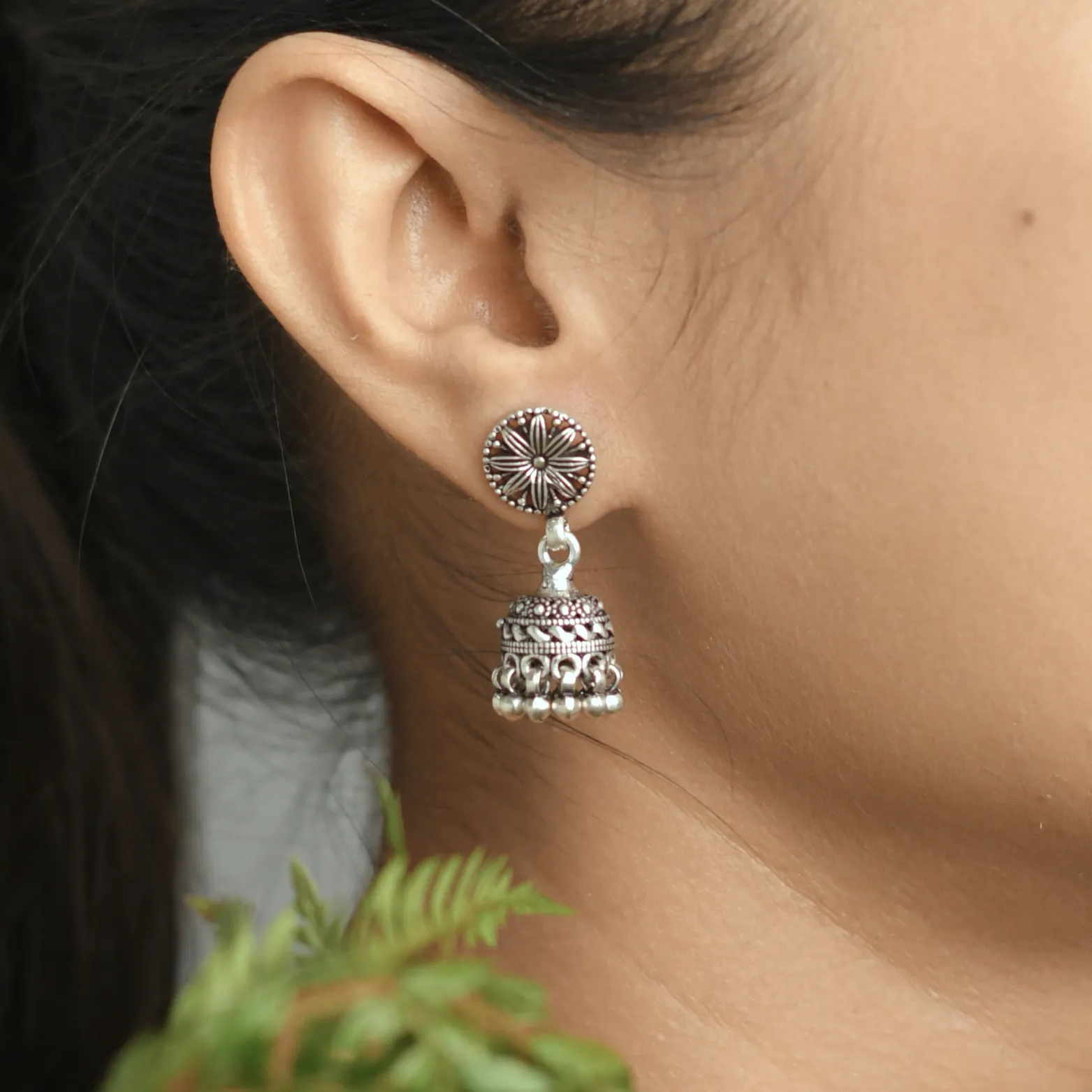 Design – Traditional jhumka with intricate floral detailing