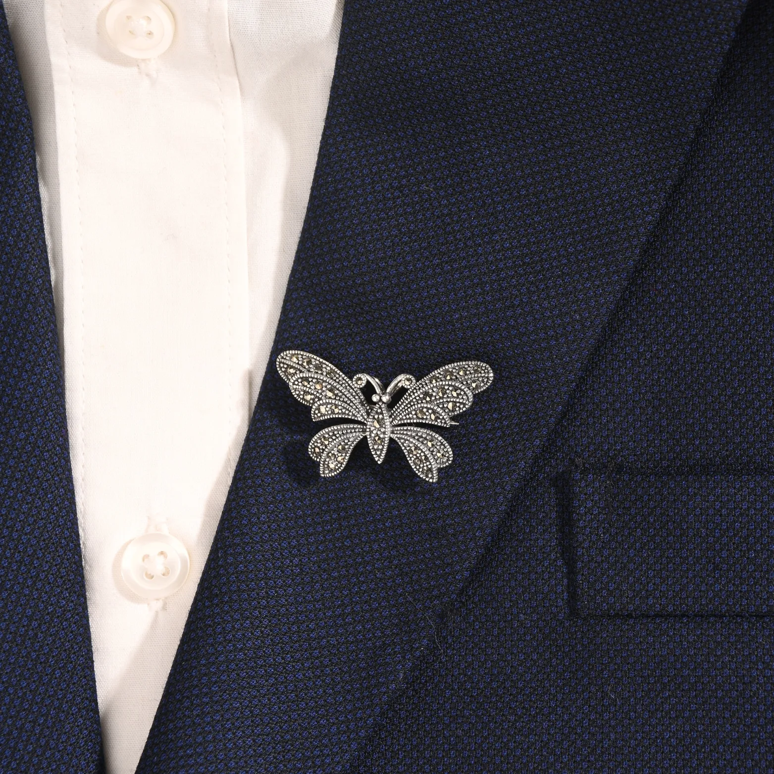 Elevate your ensemble with this elegant silver butterfly brooch, a bold symbol of grace and transformation.