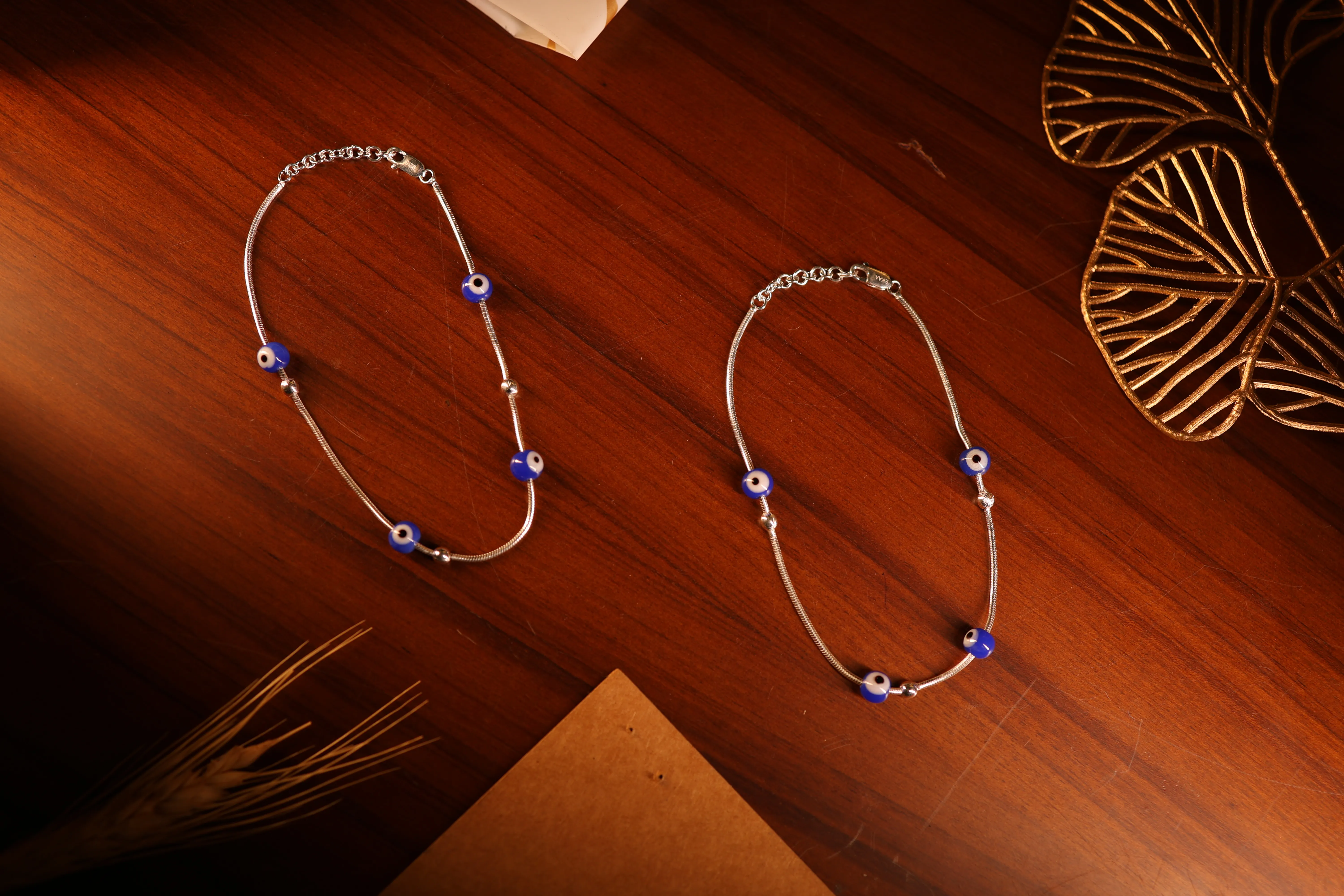 Add a touch of mystique and style with these evil eye silver anklets designed for daily elegance and protection