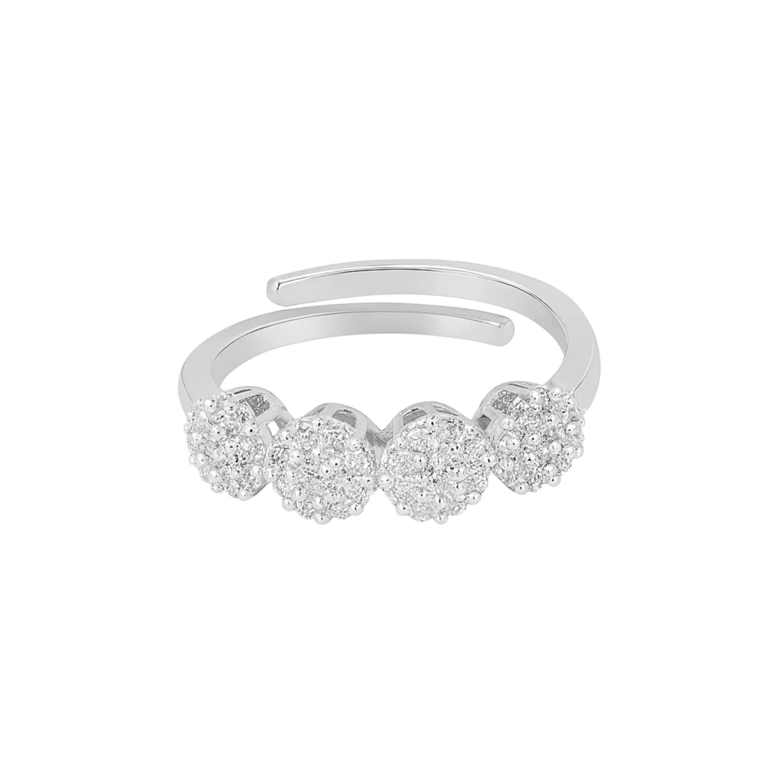 Design – Adjustable open ring with four floral CZ clusters for a radiant, elegant look