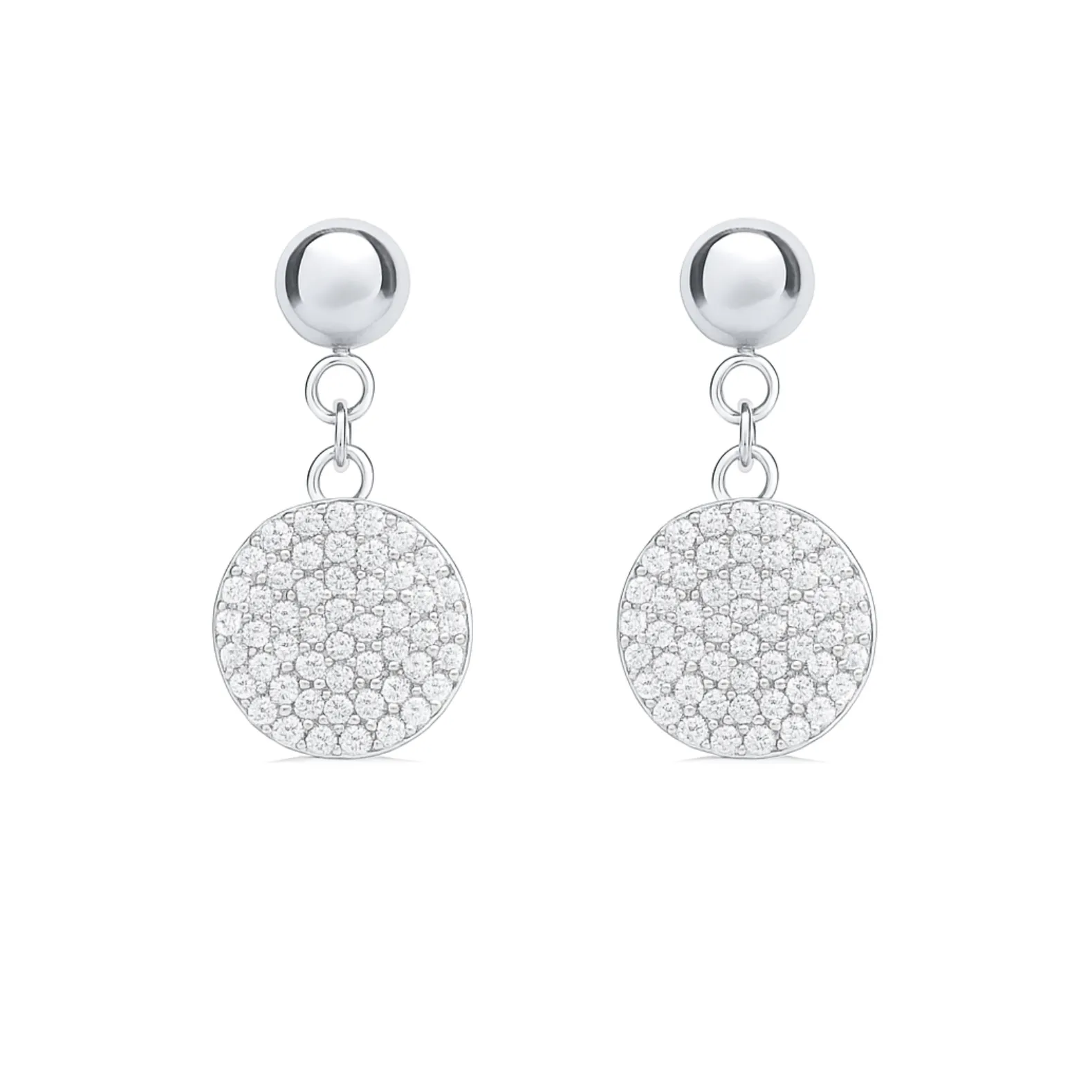 Shine effortlessly with these pave-set circle drop earrings, crafted for timeless elegance