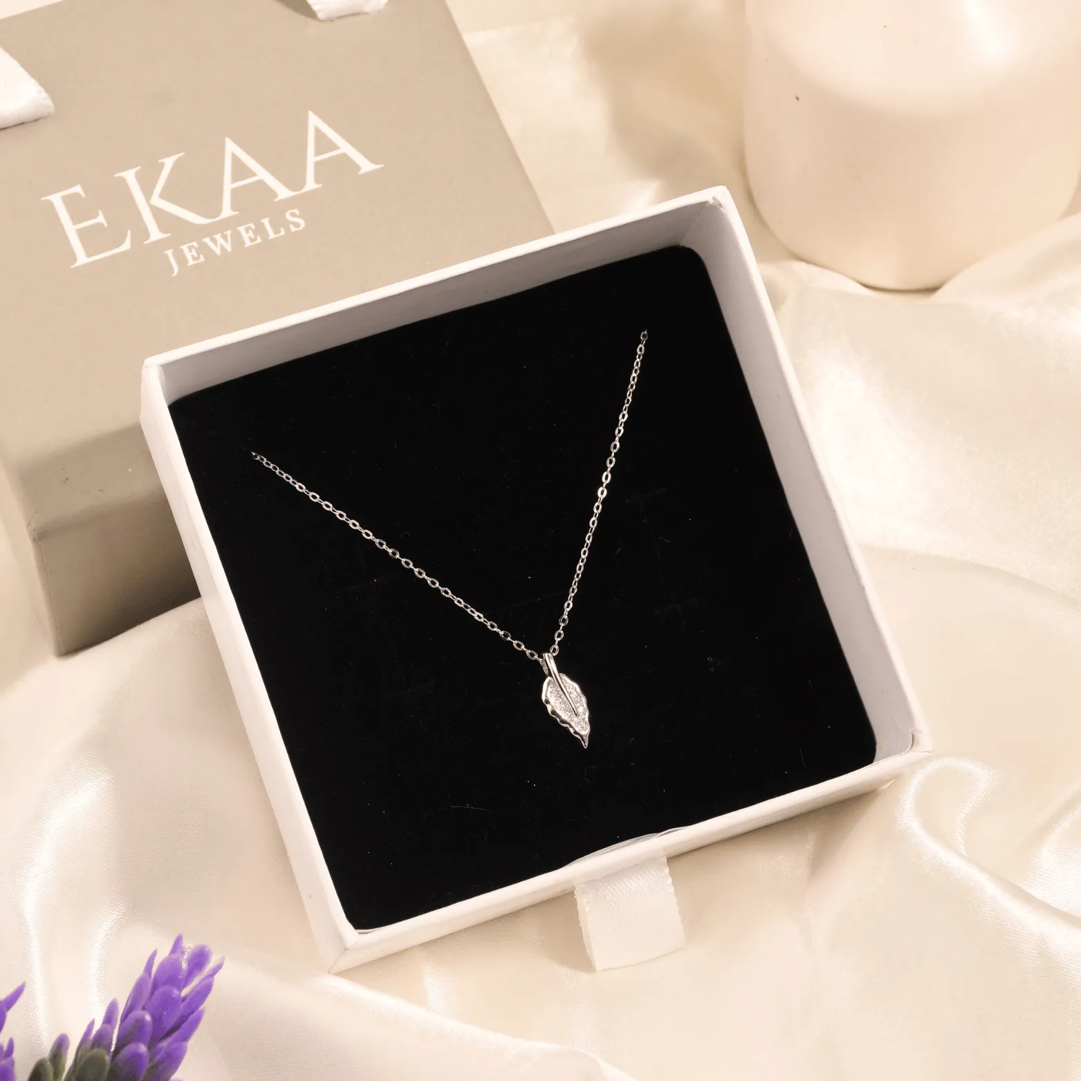 Inspired by the serene elegance of nature, the Ekaa Midnight Leaf Pendant Necklace is crafted in 92.5 sterling silver with a modern black polish finish. The sleek leaf-shaped charm is adorned with glimmering cubic zirconia stones, offering just the right amount of sparkle for everyday sophistication. Its minimalist design makes it versatile enough to complement both casual and formal outfits. Whether worn solo or layered, this pendant is a statement of subtle strength and style.