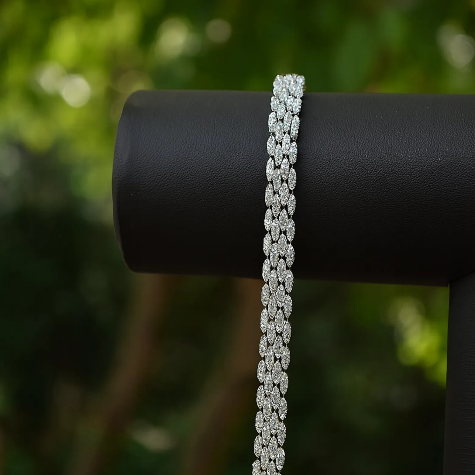 Design – Multi-row cluster-style design with a floral-inspired arrangement for maximum brilliance