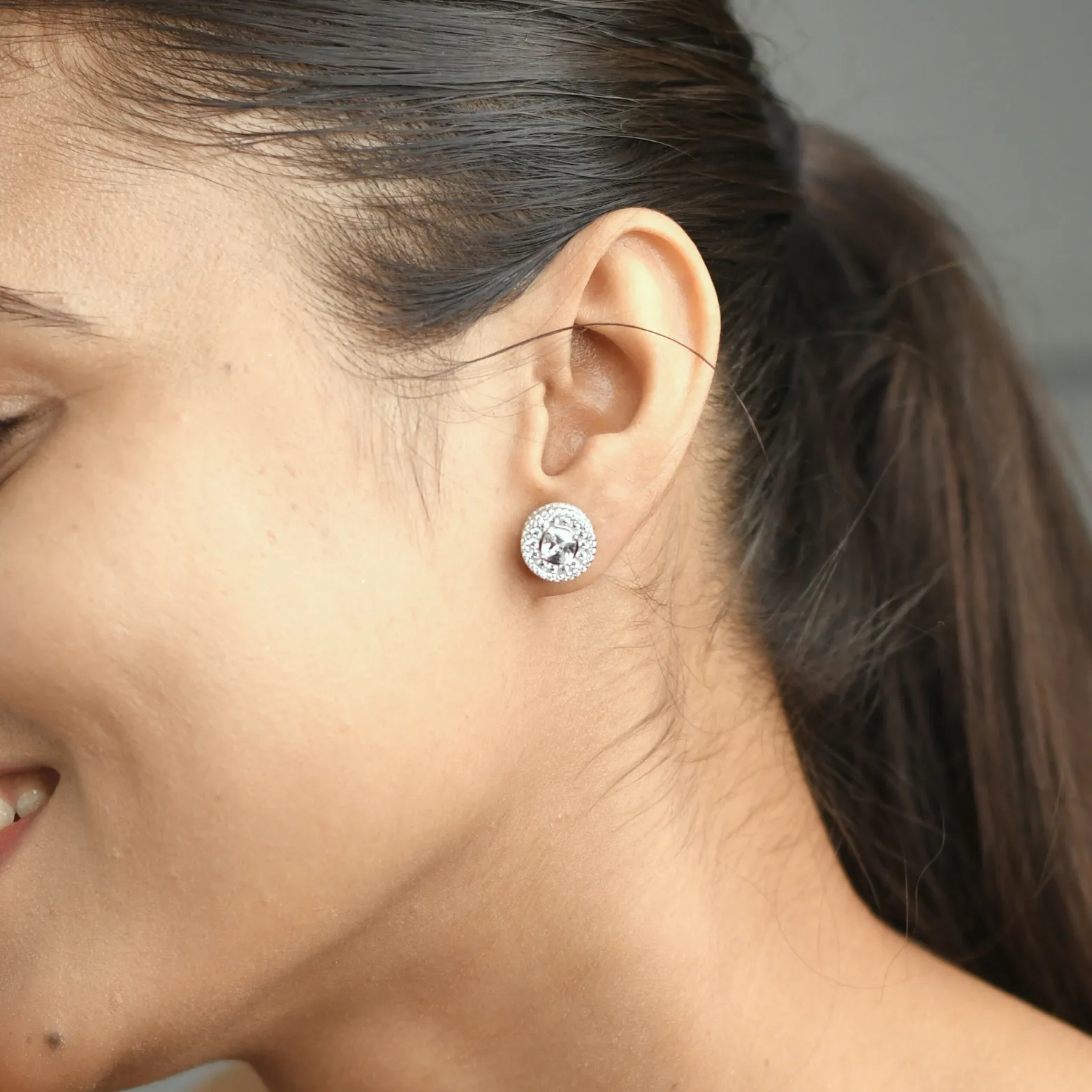 Elevate your elegance with these stunning Radiant Halo Zircon Stud Earrings. Crafted from 92.5 sterling silver, these earrings showcase a dazzling zircon centre stone encircled by a double halo of petite zircon accents. The perfect blend of classic sophistication and contemporary charm, these earrings are designed to add a touch of sparkle to your everyday or special occasion look.