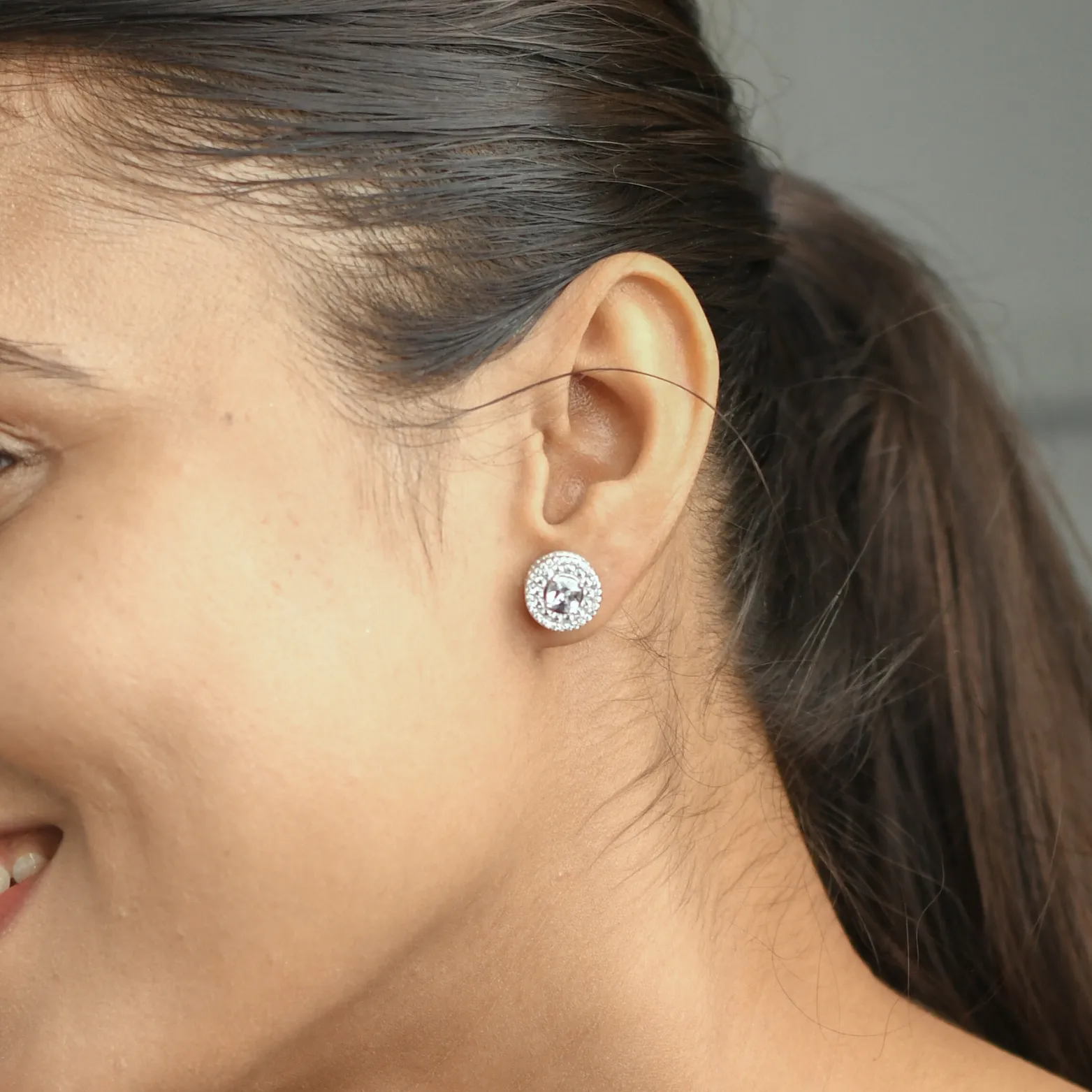 Sparkle effortlessly with these double halo zircon stud earrings in 92.5 sterling silver!