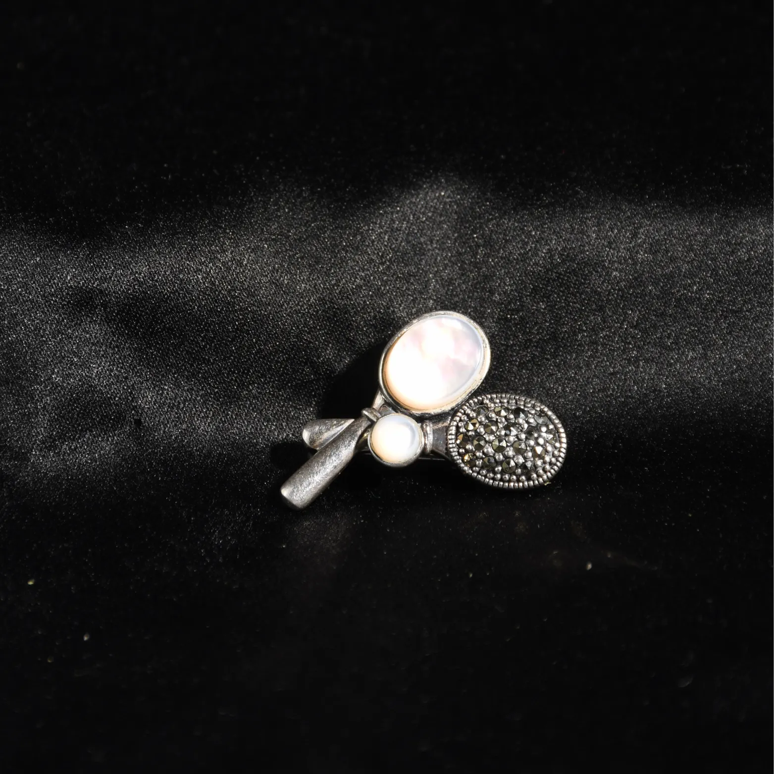 Elevate your suit game with this sophisticated 92.5 silver brooch featuring pearl and marcasite.