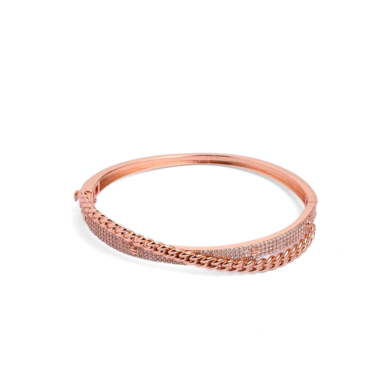 A striking fusion of rose gold shimmer and chain charm, wear elegance on your wrist.