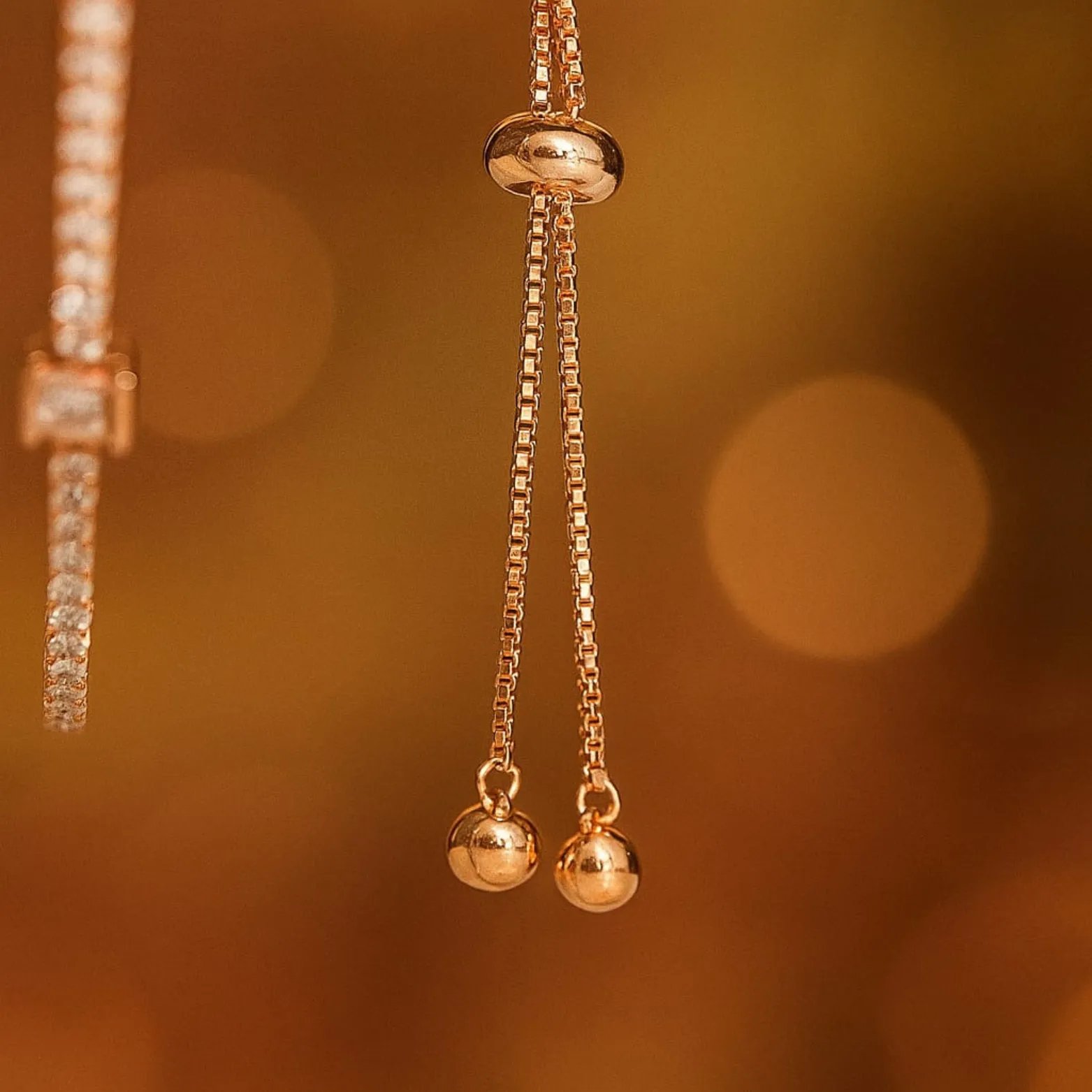 Crafted in 92.5 sterling silver with radiant rose gold plating, this bracelet blends modern minimalism with timeless sparkle. The design features a delicate line of cubic zirconia stones interrupted by sleek bar-link accents, giving it a contemporary edge. Lightweight and versatile, it’s perfect for layering or wearing solo as a refined statement piece. Designed for comfort and elegance, this bracelet transitions seamlessly from everyday wear to evening glamour.