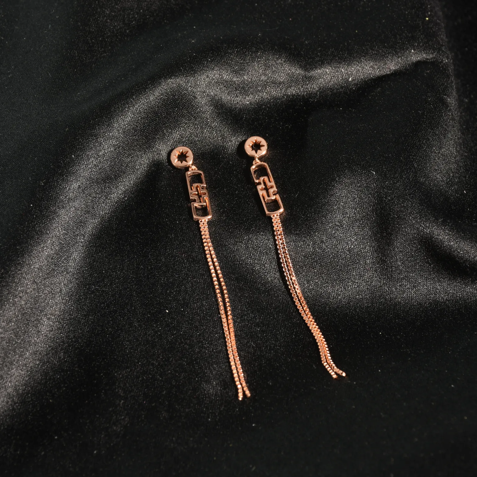 Bold and stylish rose gold tassel earrings that add effortless movement and modern glamour.