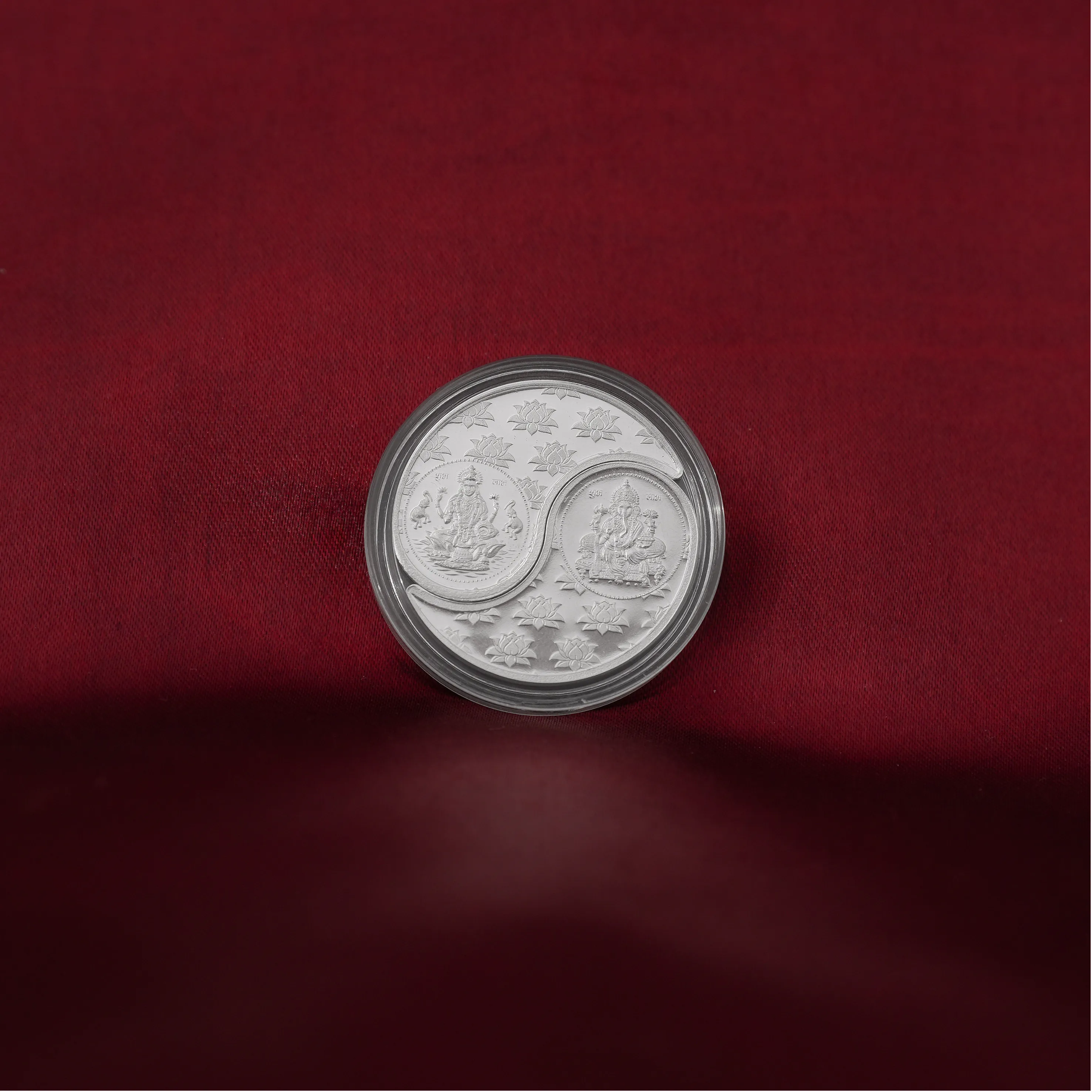 Embrace the balance of prosperity and wisdom with the Shri Lakshmi Ganesh Yin-Yang Silver Coin — a divine collectible in 999 fine silver by Ekaa Jewels.