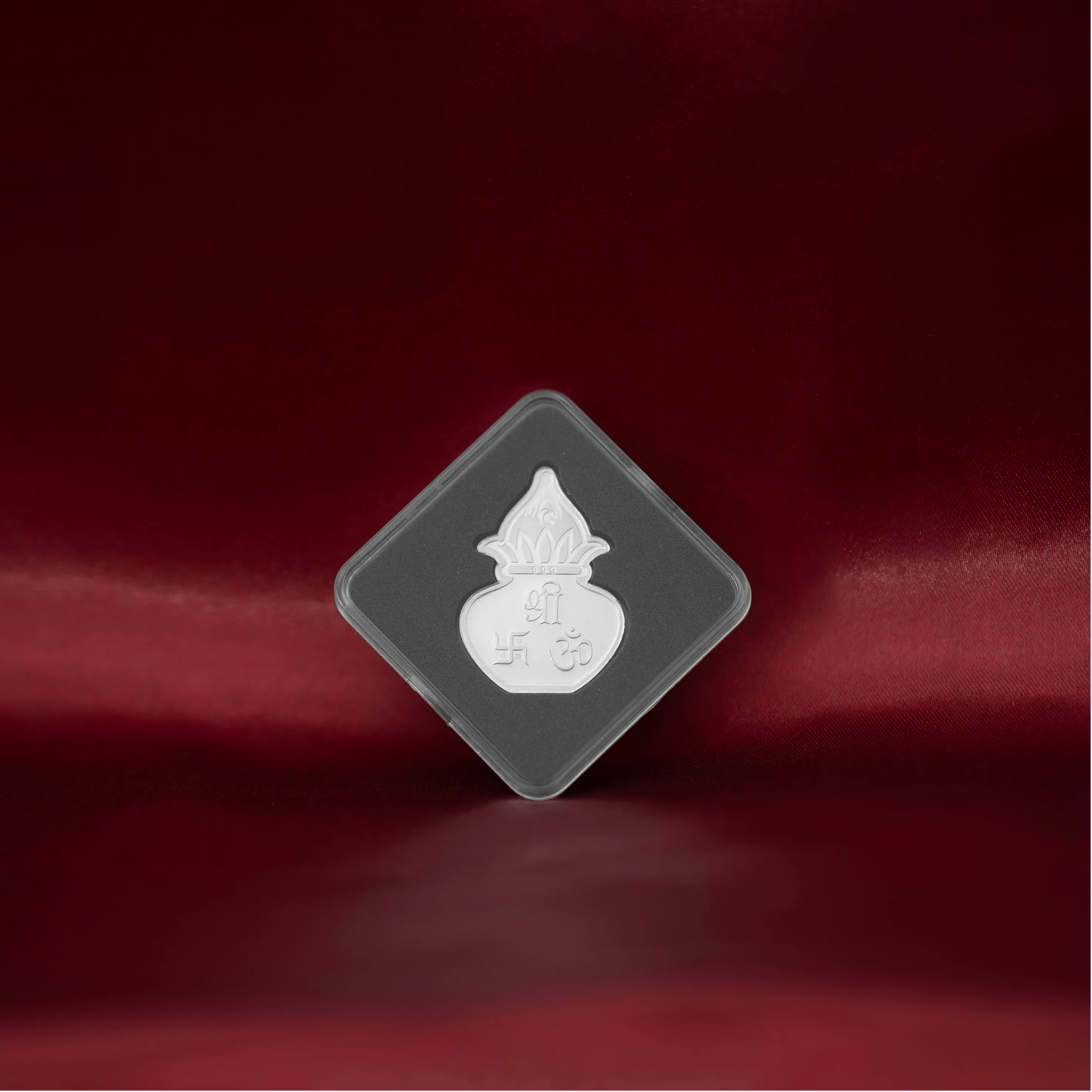 Bring home divine blessings and prosperity with this exquisitely crafted 999 pure silver Shri Lakshmi Ganesh Kalash coin — a timeless symbol of auspiciousness and wealth