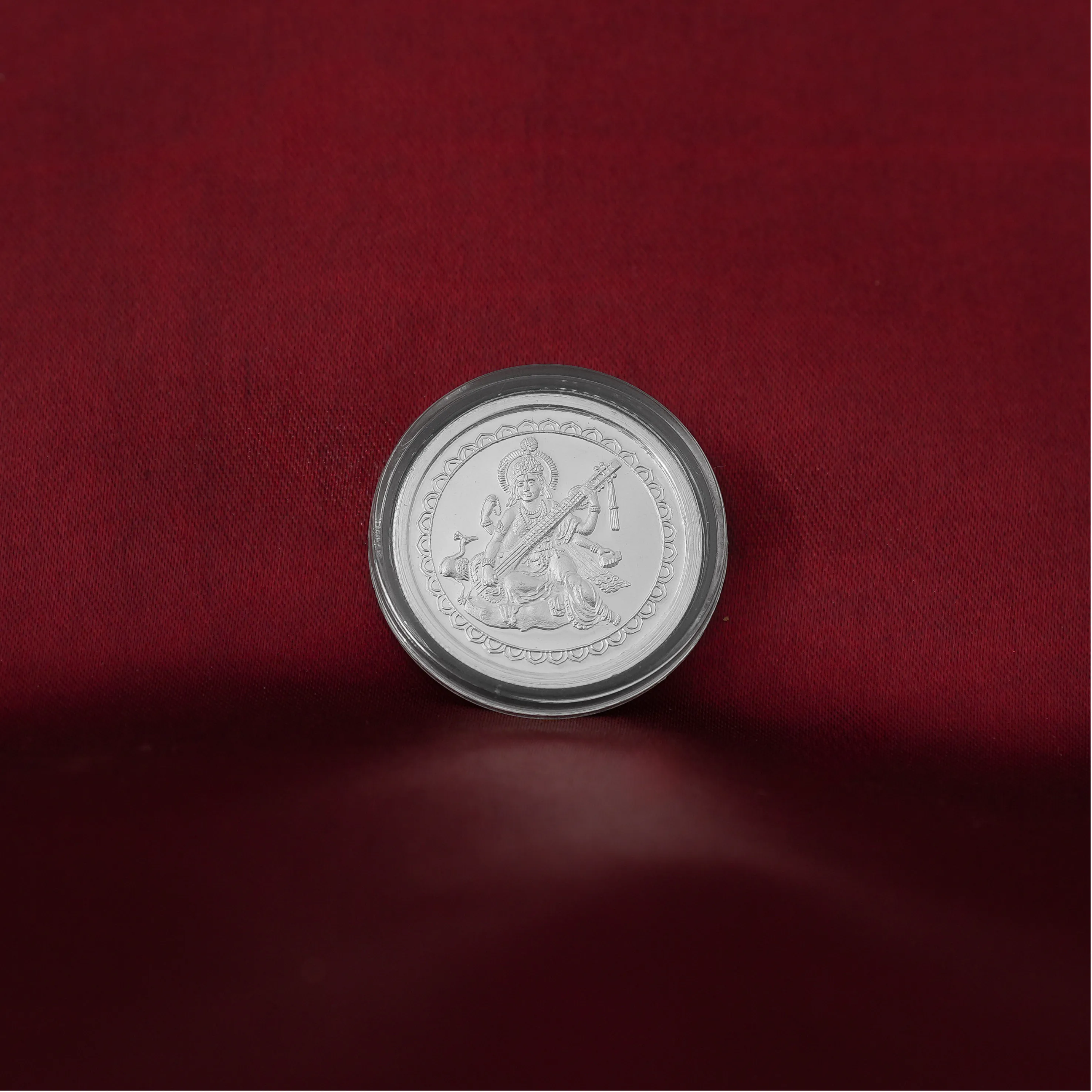 Seek the blessings of wisdom and knowledge with the Shri Saraswati Ji 999 Fine Silver Coin — a divine symbol of purity and enlightenment by Ekaa Jewels.
