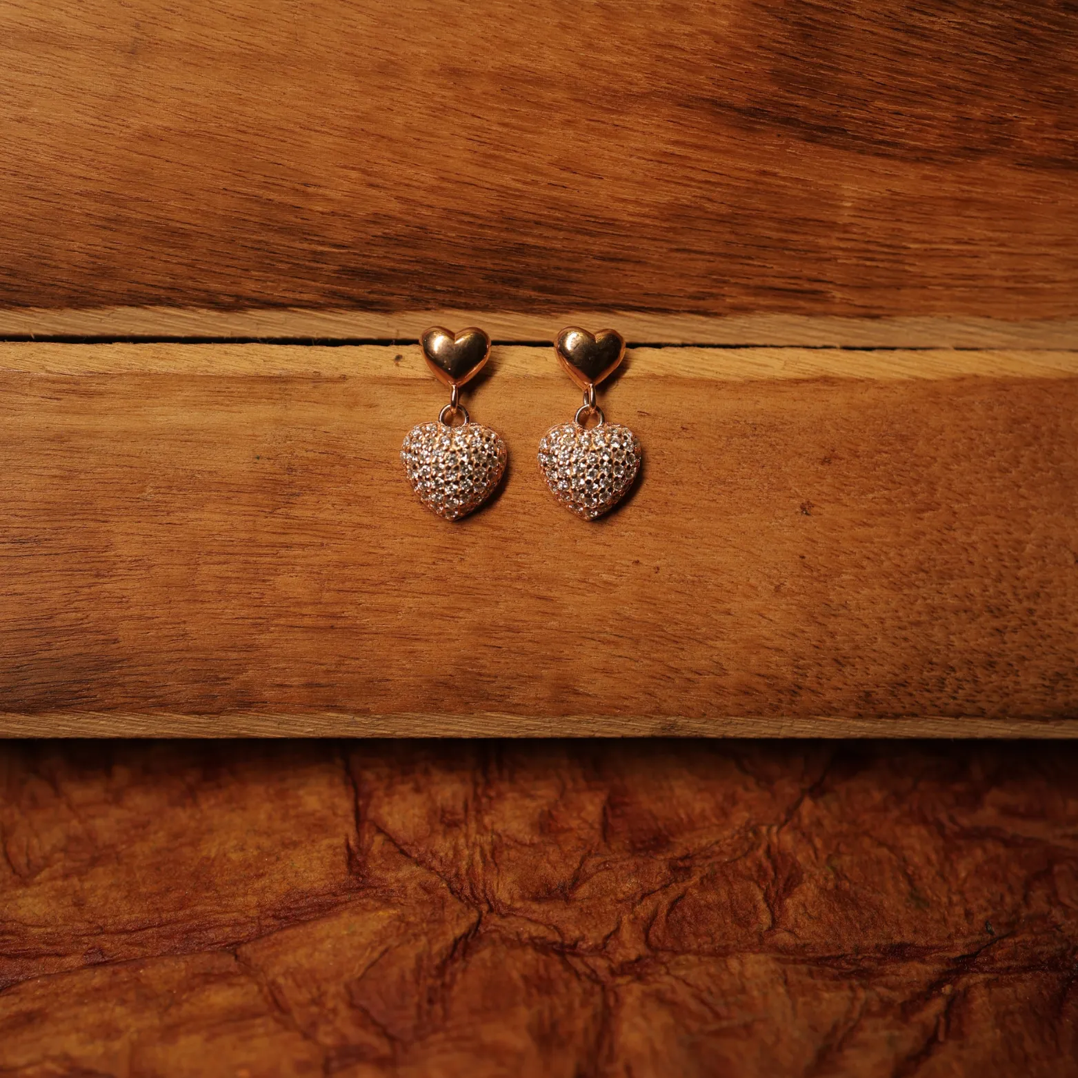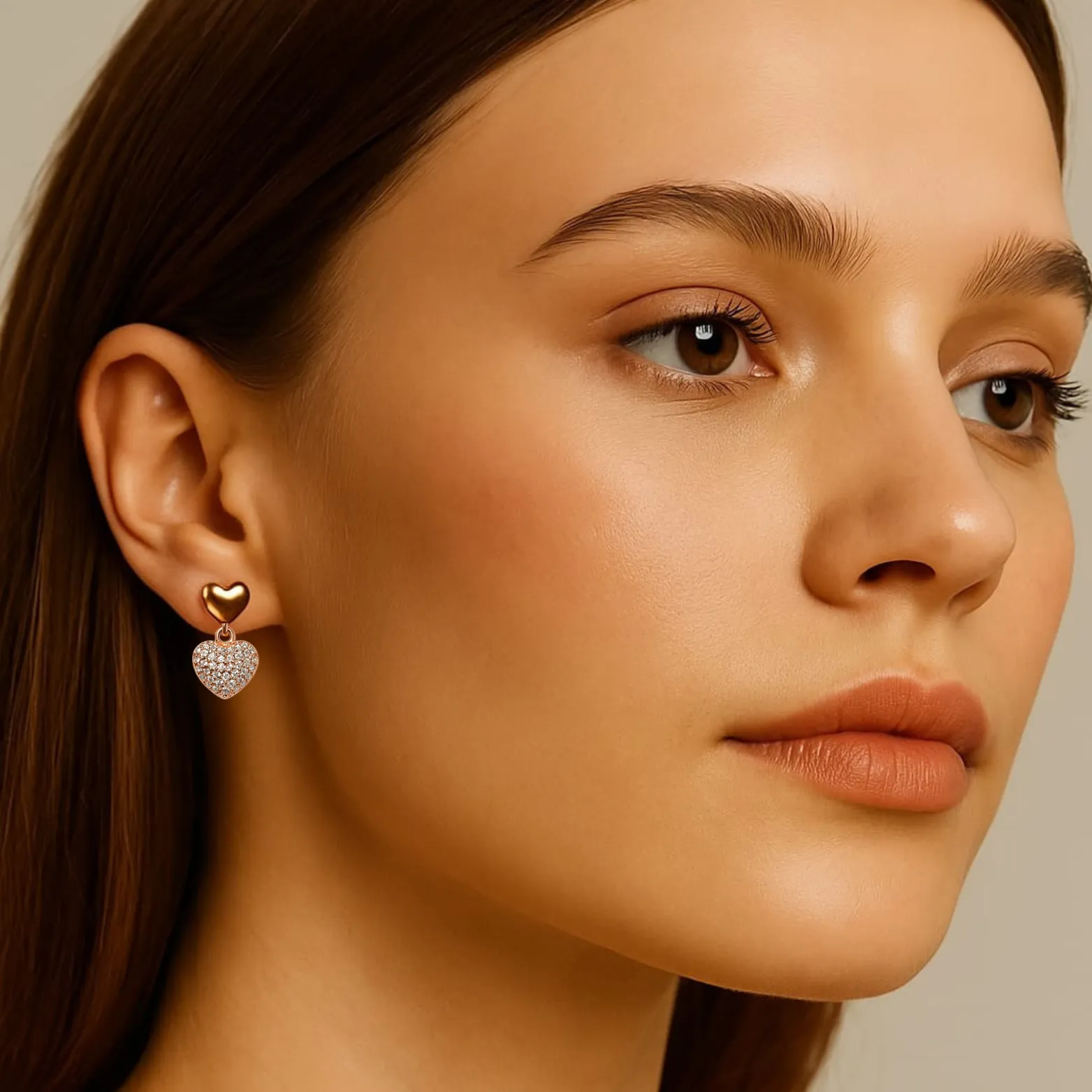 Romantic rose gold heart earrings with shimmering cubic zirconia for a sparkling statement look