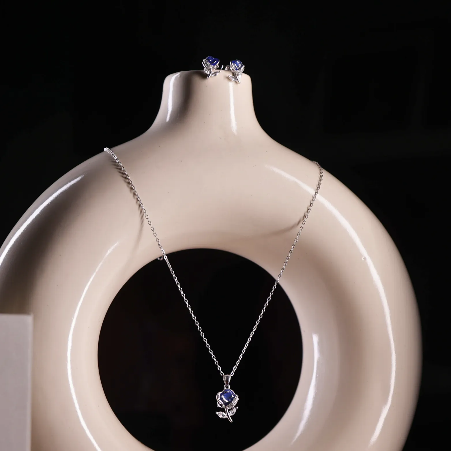 Add a royal touch to your look with this blooming blue sapphire silver jewelry set — where elegance meets everlasting charm.