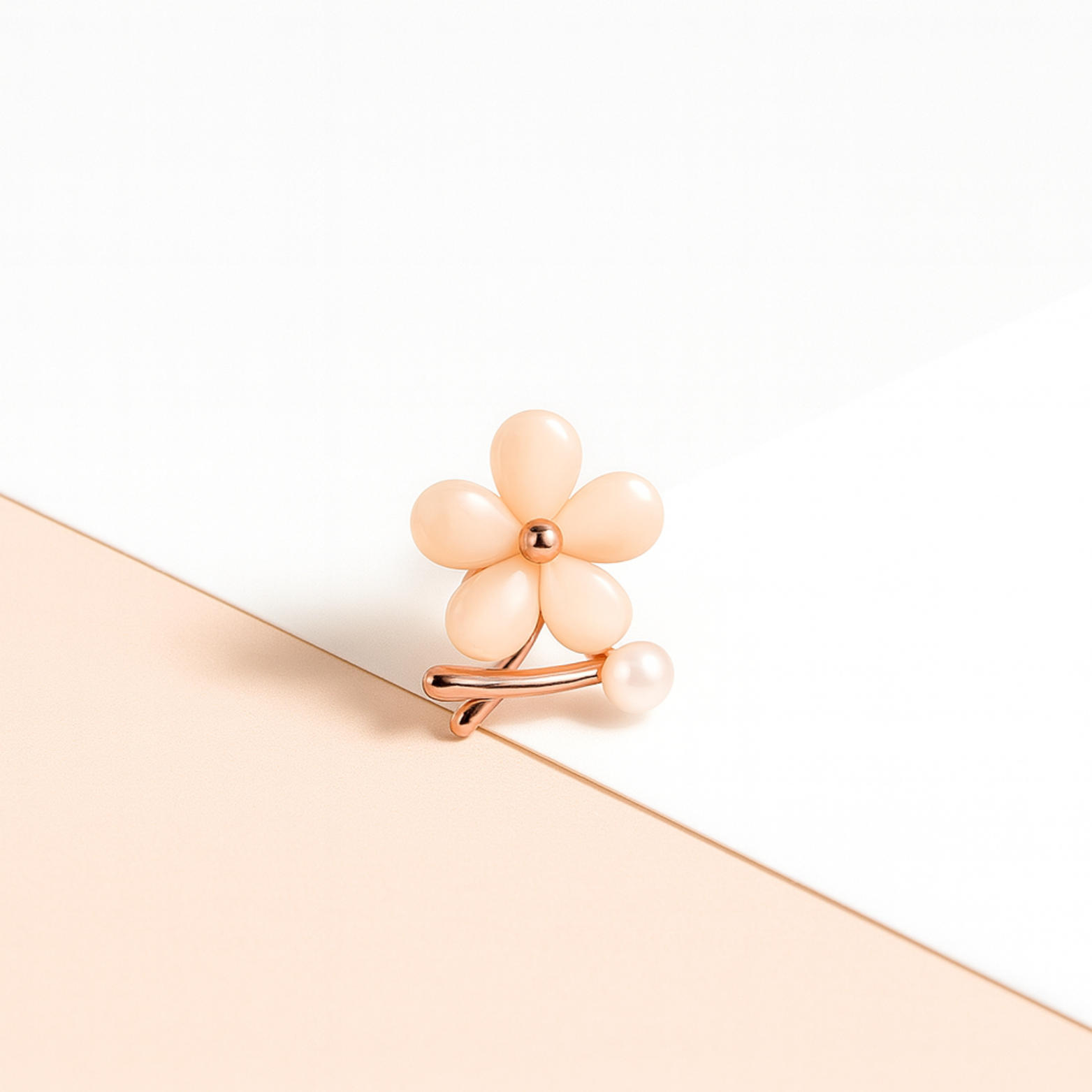 Stones – Freshwater pearl paired with blush enamel petals for a modern yet elegant look