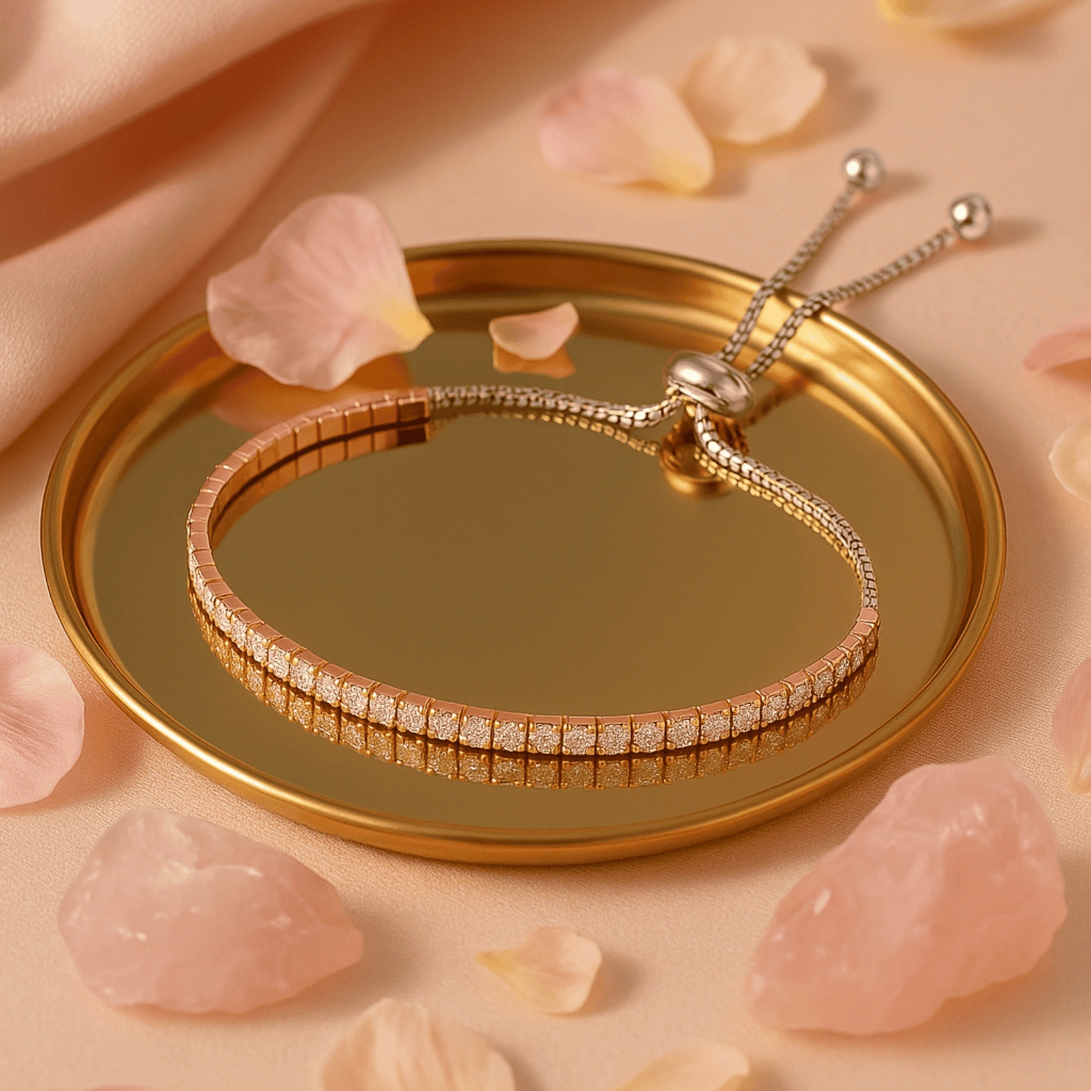 Elegance redefined – sparkle every moment with this timeless rose gold tennis bracelet.