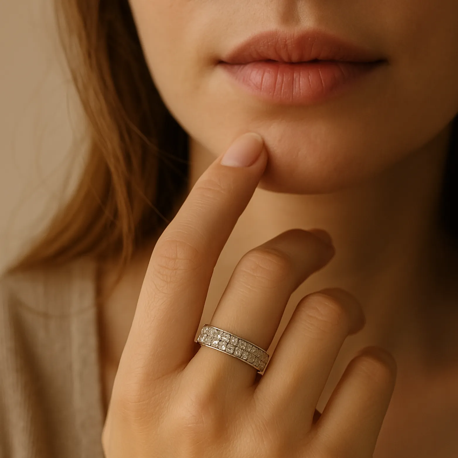 A dazzling full-stone band ring that radiates brilliance from every angle