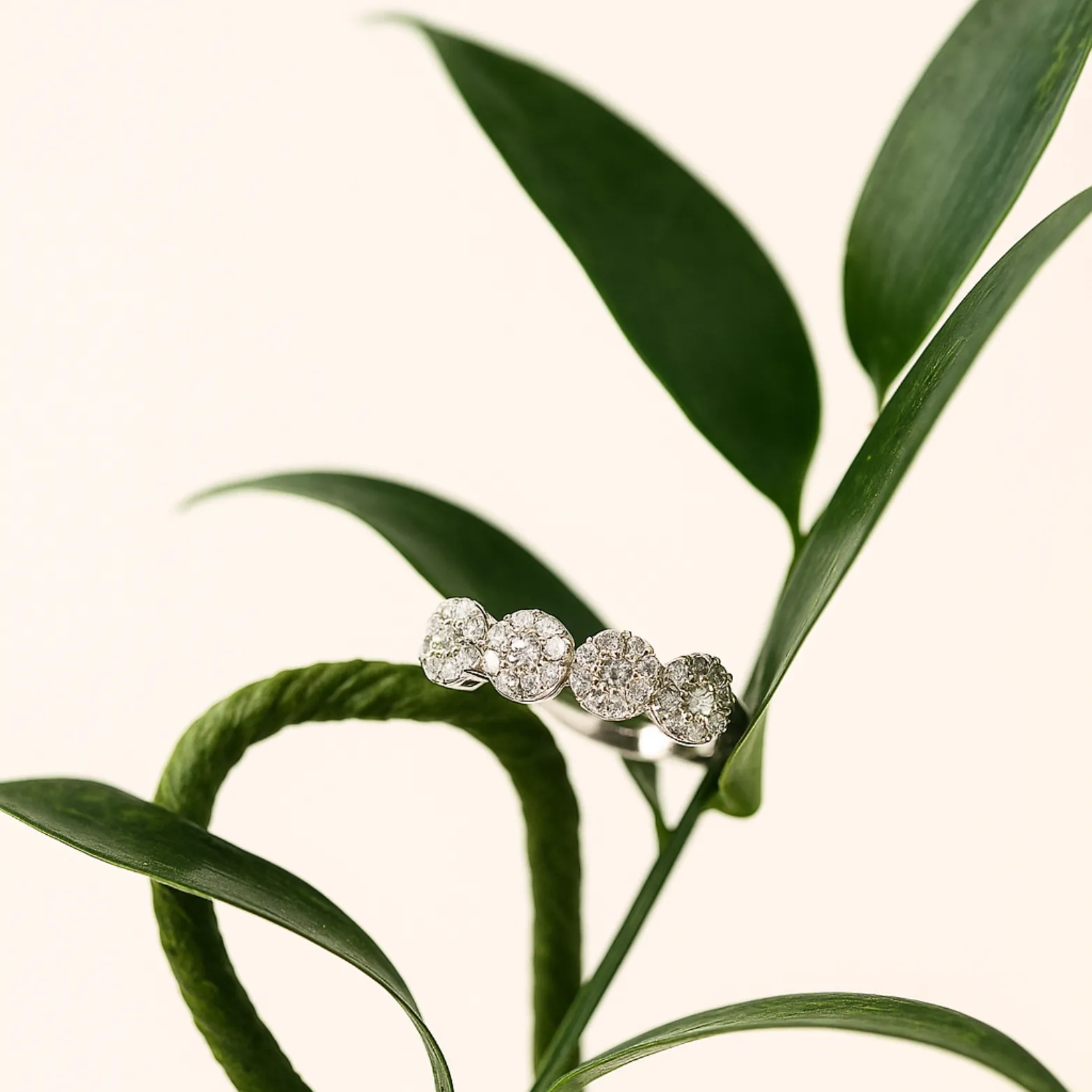 Design – Adjustable open ring with four floral CZ clusters for a radiant, elegant look