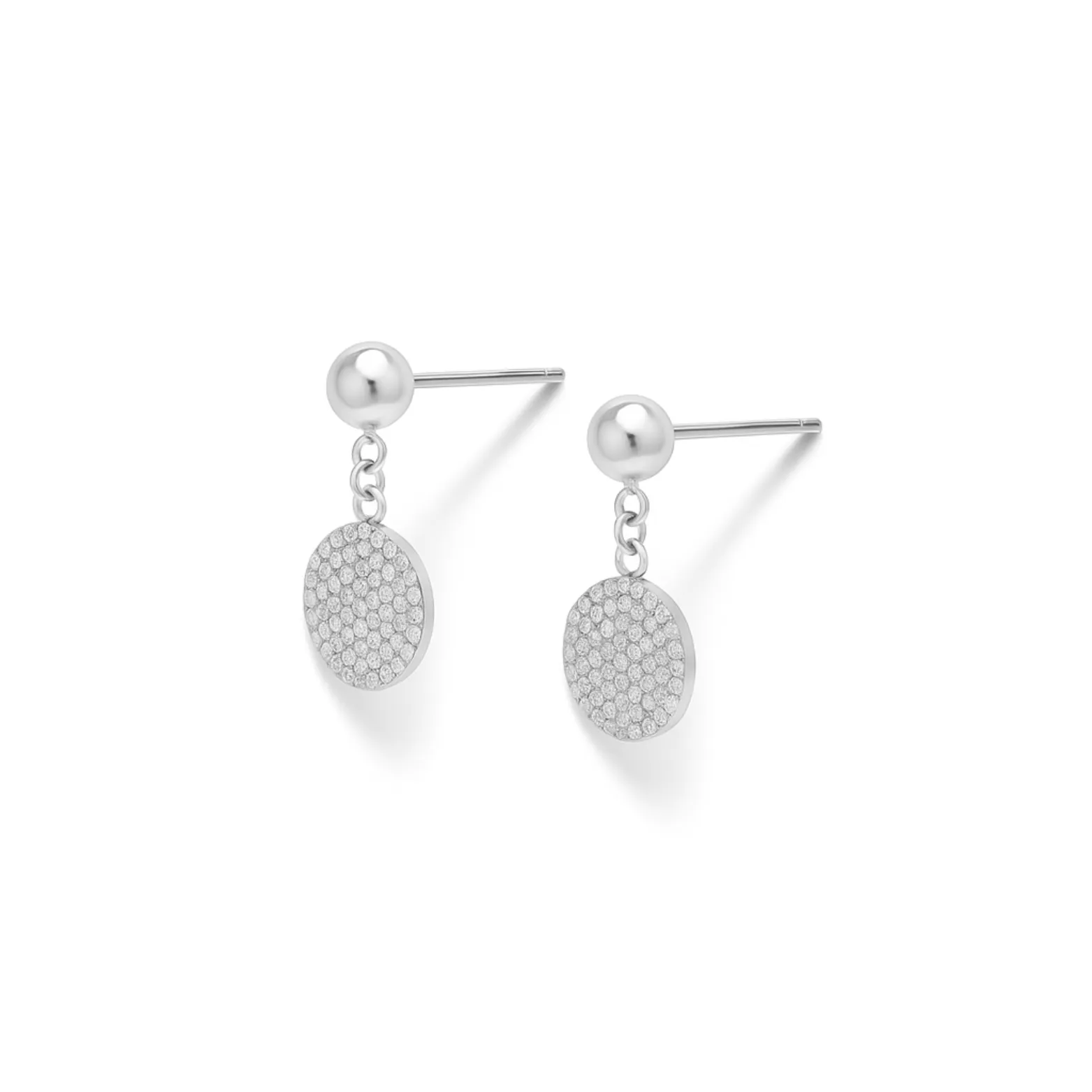 Shine effortlessly with these pave-set circle drop earrings, crafted for timeless elegance