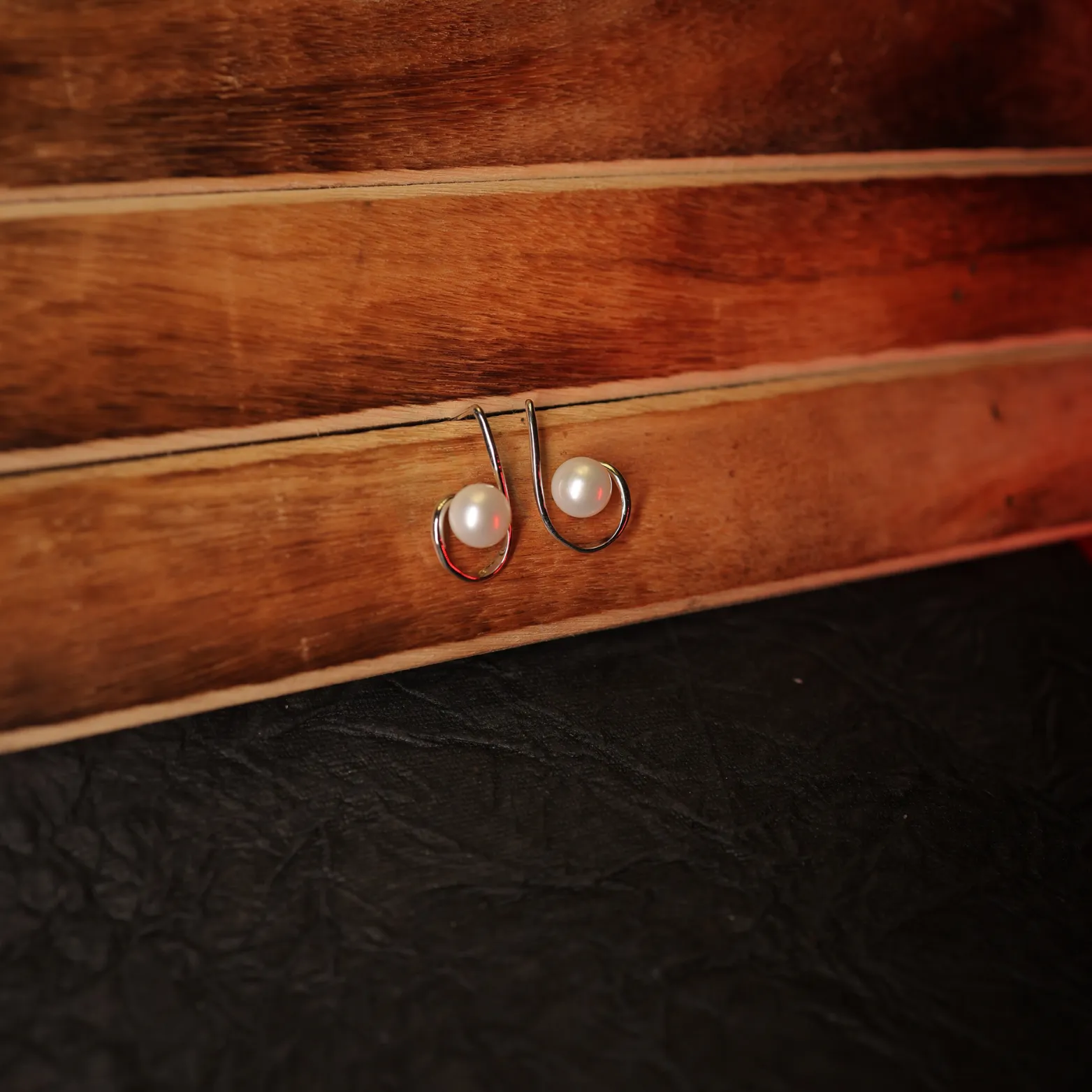 Crafted in pure 92.5 sterling silver, these ultra-modern drop earrings feature a fluid, sculptural curve that elegantly hugs a luminous pearl. The sleek design strikes a balance between simplicity and sophistication, making it perfect for contemporary women who love timeless elements with a twist. Whether paired with office wear or evening attire, these earrings add a refined charm that is subtle yet striking.