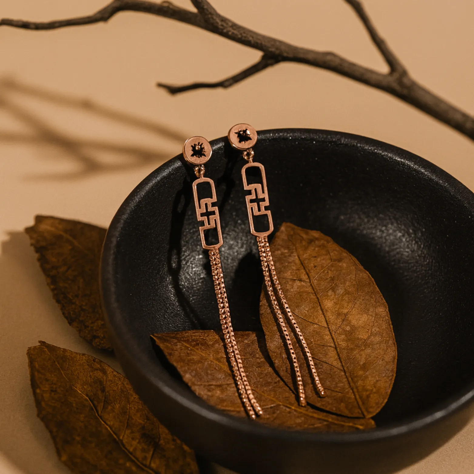 Bold and stylish rose gold tassel earrings that add effortless movement and modern glamour.