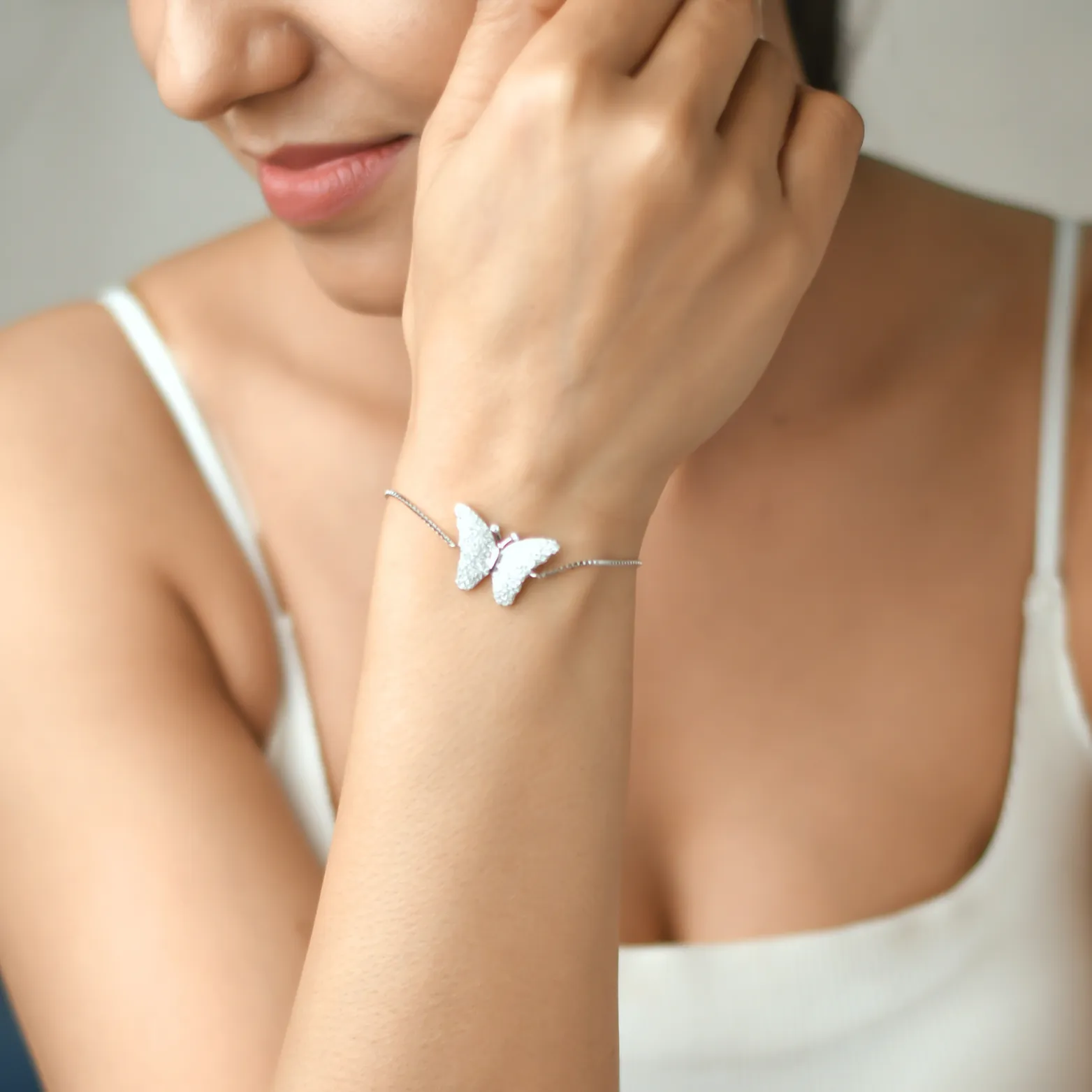 Design – Butterfly motif representing grace and transformation, encrusted with sparkling CZ