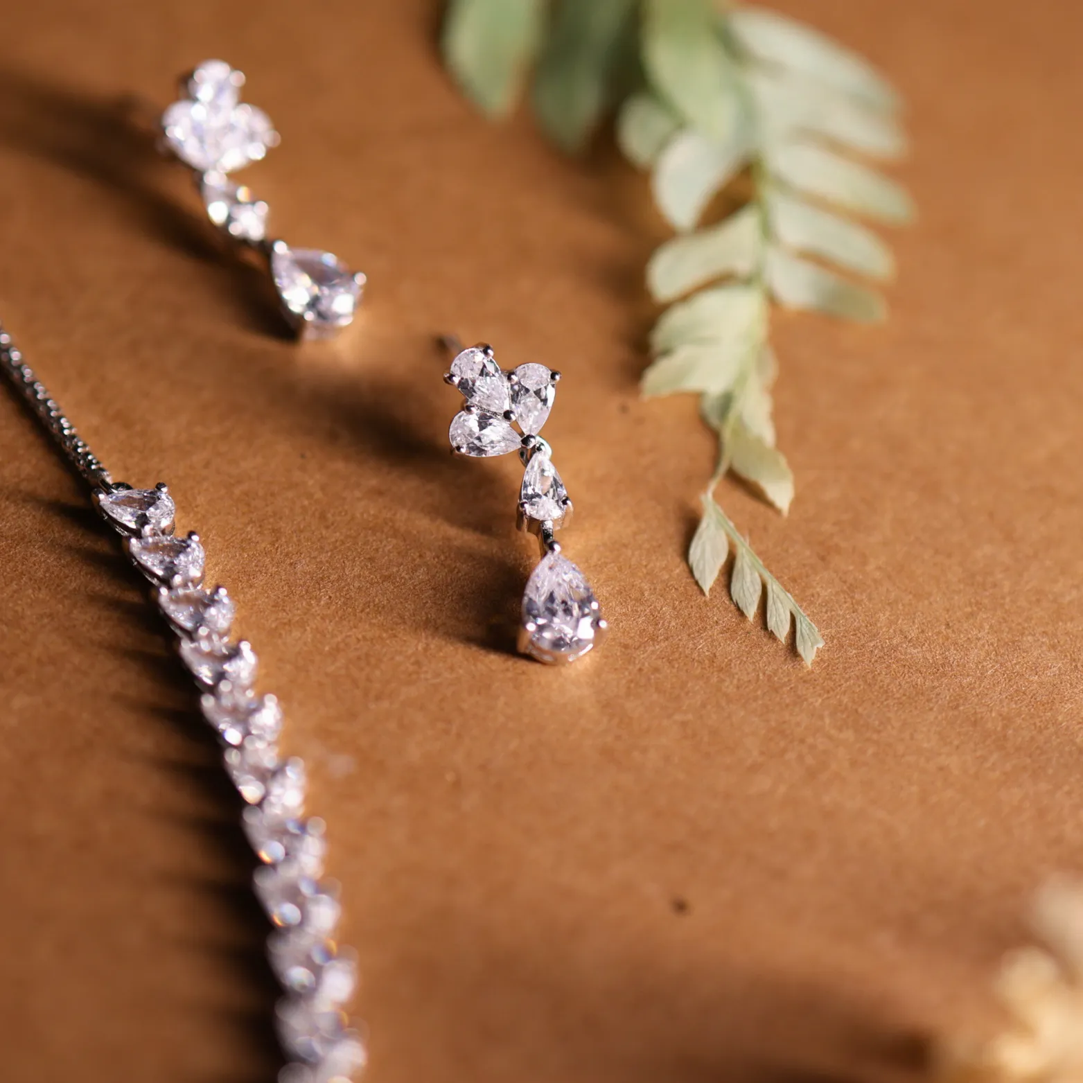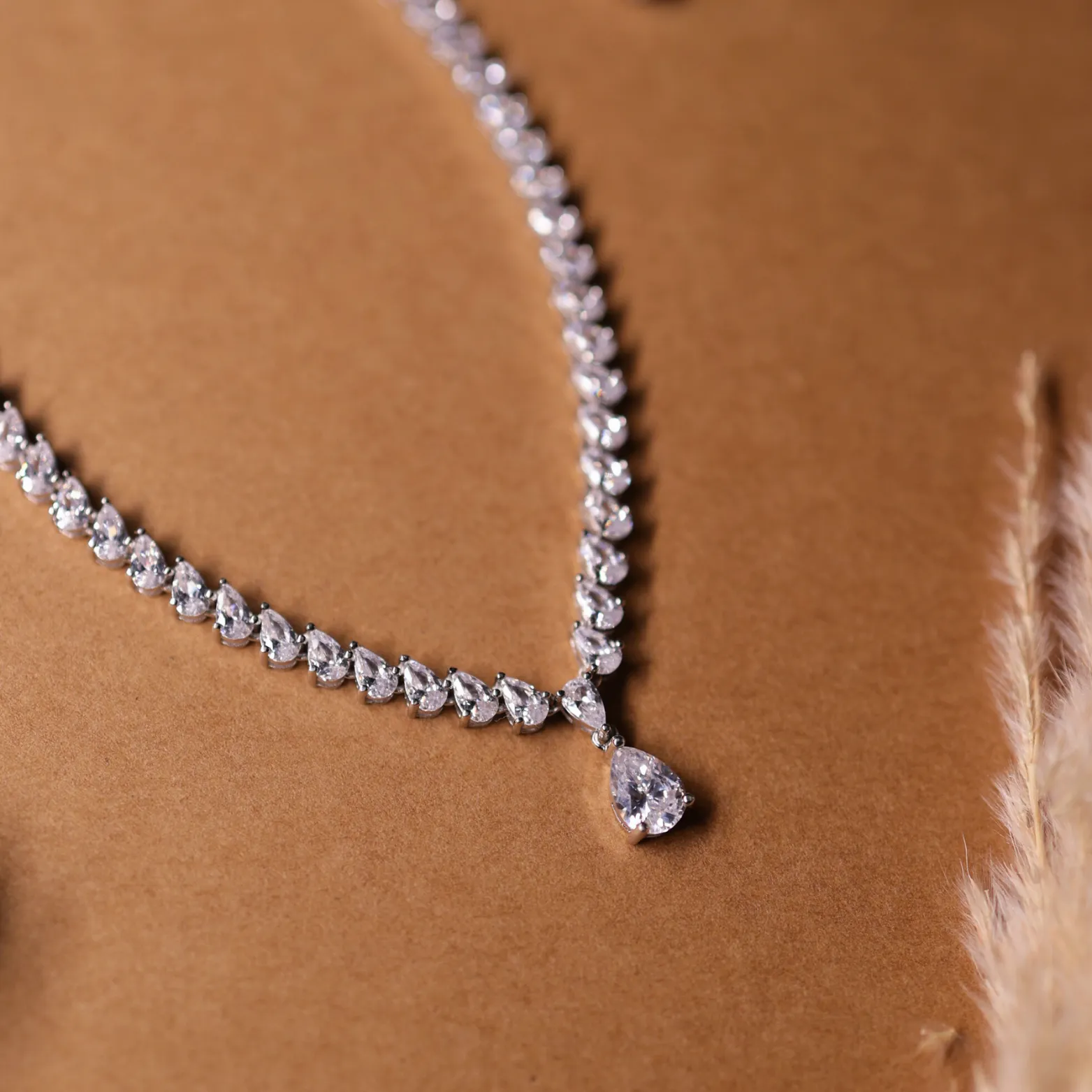 Radiate timeless charm with this teardrop-studded silver necklace set — where elegance meets everyday sophistication.