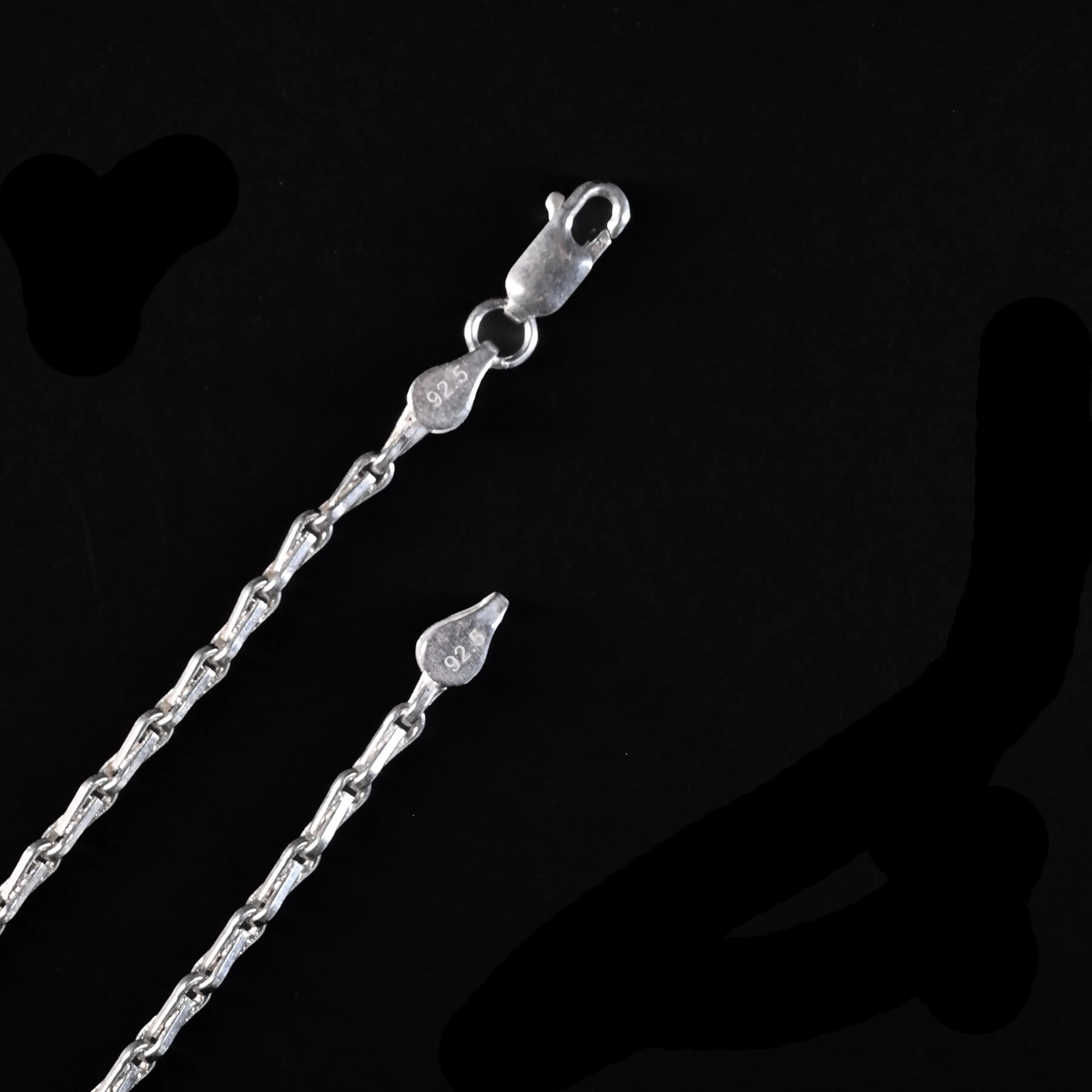 Simple yet striking, this Men’s Sleek Teardrop Silver Chain is crafted in 92.5 sterling silver with a high-polish finish that catches the light at every angle. The unique teardrop-style link design sets it apart, offering a clean and masculine silhouette perfect for modern-day minimalism. Lightweight yet durable, it’s ideal for everyday wear or pairing with pendants for a layered look.