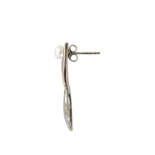 Elegant silver earrings that echo oceanic waves with a touch of timeless pearl charm